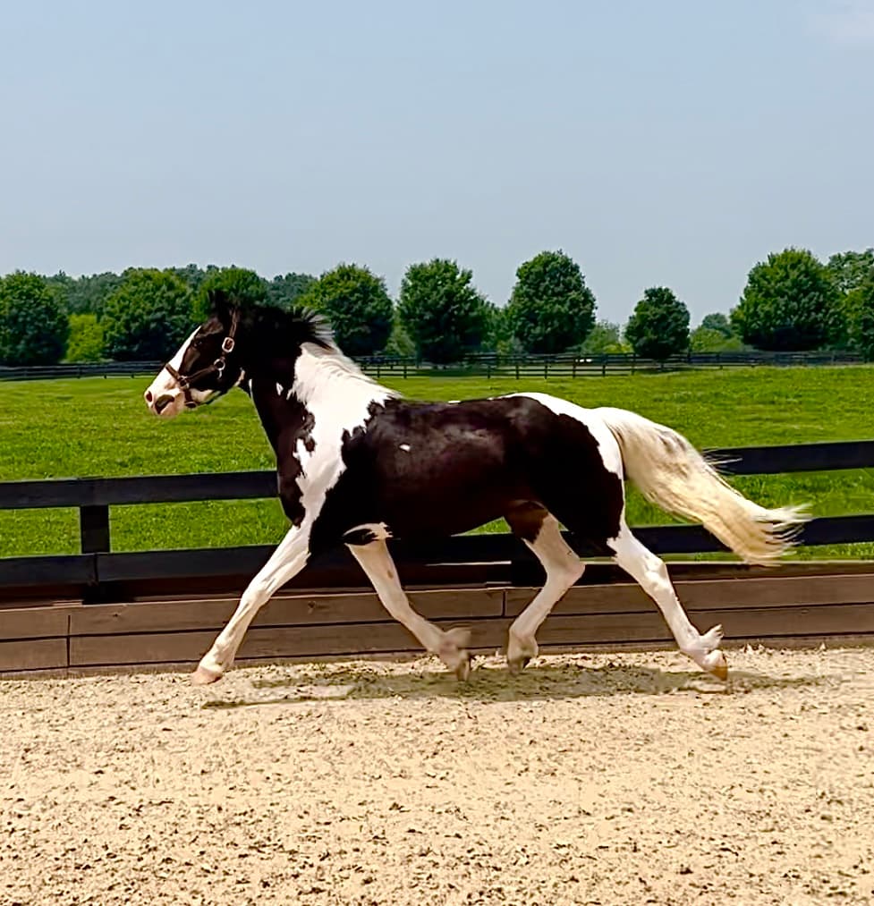 Flashy mover and super handsome! Sportacus has a calm temperament and is a quick learner. He bathes, loads, leads and has been introduced to light lunging. He has been handled daily since birth and has wonderful ground manners.